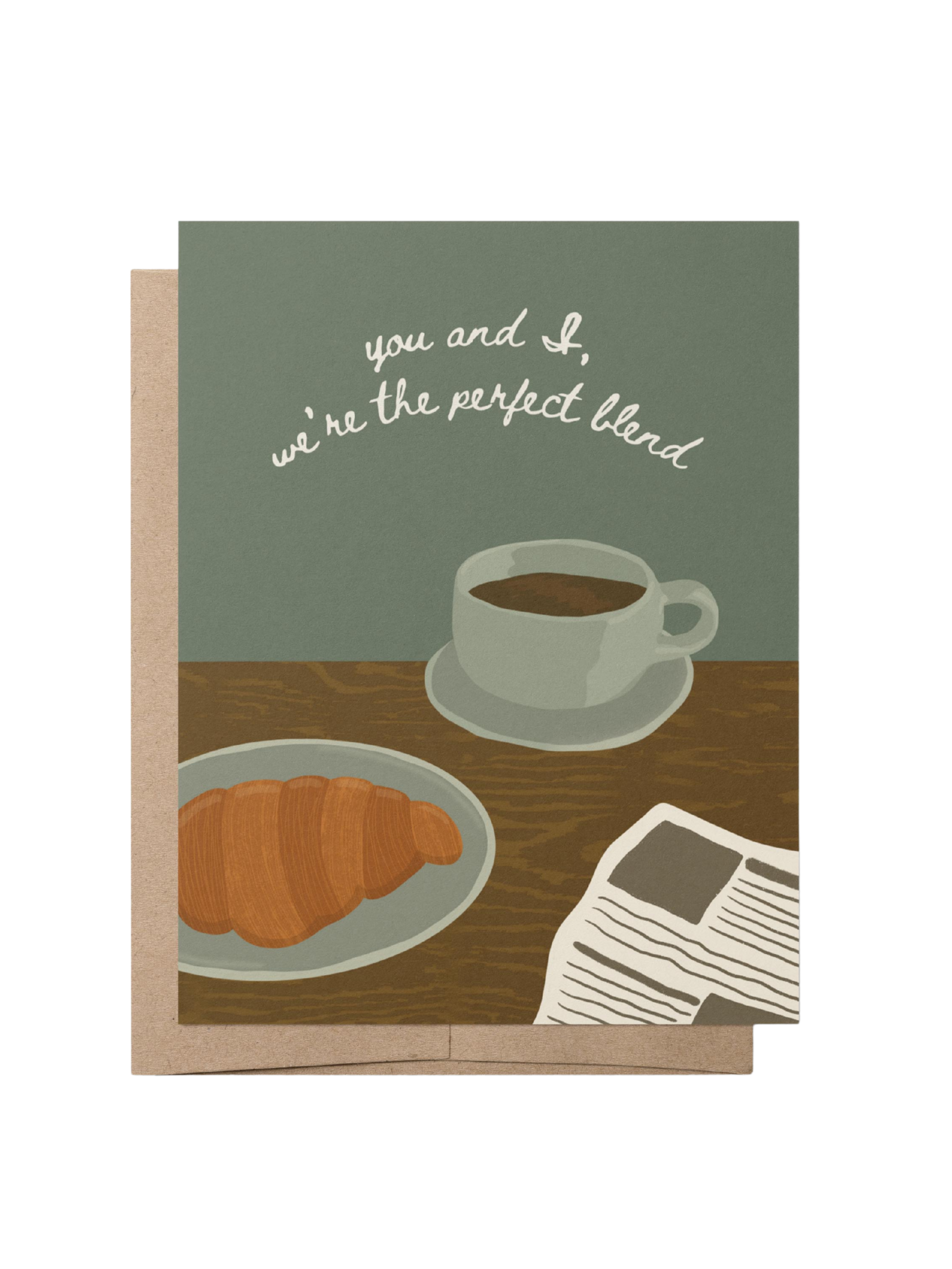 A fun coffee-themed greeting card that celebrates the perfect blend of great company and good vibes, sure to bring a smile to any coffee lover’s face.